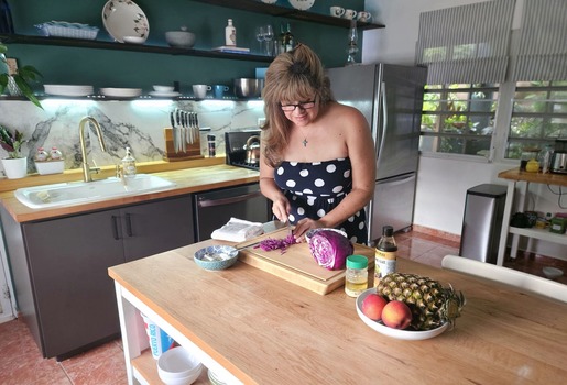 Cooking experience: (2-4 guests) Join Johana for a Puerto Rican cooking class near San Juan, in Comerio, a 45-min drive south of San Juan. Sip on a refreshing drink and enjoy a platter of snacks as your host shares stories about living in Puerto Rico. Next, join Johana in her beautifully designed kitchen to learn to cook a Puerto Rican meal. During your hands-on Puerto Rican cooking class that lasts about 1.5 hours, learn to cook 3-4 dishes. You will also learn techniques involved in making sofrito, the foundation for most Caribbean dishes using only local ingredients. After cooking, sit down at the table (outdoors, weather permitting) to share the authentic Puerto Rican meal you helped prepare with Johana. Your meal concludes with dessert and includes two cocktails or two glasses of beer.